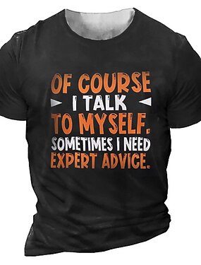 Menns T-Shirt Kortermet Grafisk Morsom Sitat 'Selvfølgelig Snakker Jeg Med Meg Selv Noen Ganger Trenger Jeg Ekspert Råd' Humoristisk Livsstil Topp
