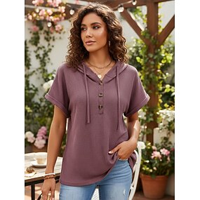 Dame Sommertopper Helfarge Elegant Årgang søt stil Kortermet Med hette Vanlige topper Daglig Blå Svart Rosa Lilla Beige Sommer Vår Høst
