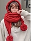 Julestrikkskjerf med hette til dame – koselig fleecefôr, pompongdetaljer, flerfargede alternativer for vintermote, perfekt for julegaver og utendørsaktiviteter