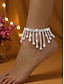 dameankelkjede med gullfarget strass og frynser - glitrende krystaller og fotkjede med kjede til fest, strand og kveldsarrangementer