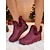 Dame vinterstøvler i burgunder med fuskepelsfôr og glidelås på siden, varme, vanntette ankelstøvletter for utendørs bruk i kaldt vær.