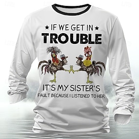 Herrers morsom søster langermet grafisk T-skjorte - 'Hvis vi kommer i trøbbel er det søsterens feil fordi jeg hørte på henne'