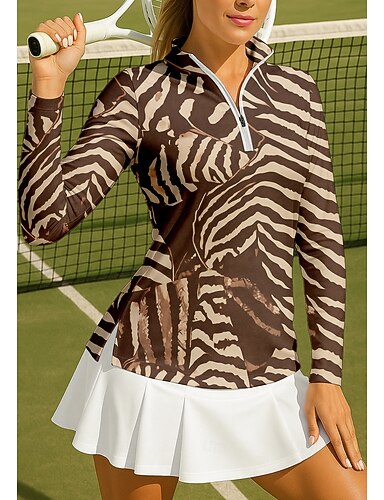 Dame Dyr Sebra Sportsskjorte POLO T-skjorte Tennisskjorte Tennis-t-skjorte Langermet Glidelås Blomster UPF50+ UV-bestandig Høy Elastisitet Fukttransport Pustende Tennis Golf Pickleball Høy krage