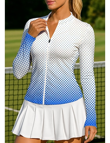 Dame Geometrisk Gradert Topper Sportsskjorte Tennisskjorte Tennis-t-skjorte Langermet Glidelås Blomster UPF50+ UV-bestandig Høy Elastisitet Fukttransport Pustende Volleyball Tennis Golf Rund Høyhalset