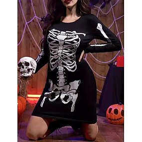 Kvinne Dødningehoder Print Mini Kjole T skjorte Kjole Tee Kjole Shift Kjole Sommer Kjole Ferie Causal Fest Daglig Regular Fit Grafisk Dødningehode Lang Erm Rund Hals Svart Vår Høst Vinter
