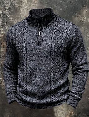 Herre Genser Gensere med kvart glidelås Strikket genser Riflet Strikke Vanlige topper Strikket عادي Quarter Zip Mote Gatemote Avslappet Dagligdagstøy Klær Høst Vinter Burgunder Blå S M L