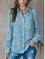Dame Skjorte Knapper Trykt mønster Blomstret Aktiv Daglig Stilfull Langermet Skjortekrage Vanlige topper Daglig Ferie Blå Vår Høst