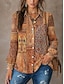 Dame Skjorte Bluse Lapper Knapper Trykt mønster Blomstret Grafisk Årgang Fritid Langermet Skjortekrage Vanlige topper Daglig Navyblå Brun Sommer Vår Høst Vinter