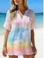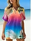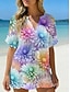 Dame Skjorte Uformell skjorte Strandskjorte Bluse Trykt mønster Blomstret Grafisk Bohem Stilfull Fritid Kortermet V-hals Vanlige topper Daglig Ferie Ut på byen Blå Hvit Gul Oransje Grønn Sommer Vår