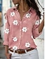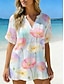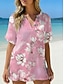 Dame Skjorte Uformell skjorte Strandskjorte Bluse Trykt mønster Blomstret Stilfull Klassisk Moderne Kortermet V-hals Vanlige topper Daglig Ferie Ut på byen Blå Rosa Himmelblå Lyseblå Sommer Vår