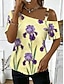 Dame T skjorte T-skjorte Trykt mønster Blomstret Grafisk Stilfull Klassisk Fritid Kortermet Asymmetrisk hals Vanlige topper Daglig Ut på byen Helg Blå Gul Rosa Sommer Vår