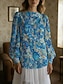 Dame Skjorte Trykt mønster Blomstret Daglig Fritid 3/4 ermer Crew-hals Vanlige topper Daglig Ferie Blå Hvit Grønn Sommer Vår Høst