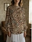 Dame Skjorte Bluse Trykt mønster Blomstret Paisly Grunnleggende Fritid Langermet Crew-hals Vanlige topper Daglig Blå Brun Grå Høst Vinter