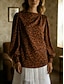 Dame Bluse Trykt mønster Blomstret Leopard Stilfull Sexy Klassisk Langermet Høyhalset Vanlige topper Daglig Ferie Ut på byen Svart Rosa Brun Kakifarget lysegrå Sommer Vår