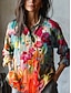 Dame Skjorte Trykt mønster Blomstret Grafisk Tusenfryd Elegant Årgang Tropisk Langermet V-hals Vanlige topper Daglig Ferie Strand Klær Blå Rosa Lilla Grønn Grå Sommer Vår