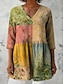 Dame Bluse Trykt mønster Blomstret Grafisk Bohem Årgang Daglig 3/4 ermer V-hals Vanlige topper Daglig Ferie Ferieklær Blå Gul Rosa Grønn Sommer Vår Høst