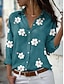 Dame Bluse Trykt mønster Blomstret Ferie Daglig Fritid 3/4 ermer V-hals Vanlige topper Daglig Ferie Ut på byen Grønn Sommer Vår Høst