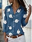 Dame Bluse Trykt mønster Blomstret Grafisk Stilfull Strandstil Kortermet V-hals Vanlige topper Daglig Lyseblå Sommer Vår