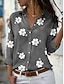 Dame Bluse Rynket Knapper Blomstret Stilfull Fritid Kortermet V-hals Vanlige topper Daglig Kakifarget Sommer Vår