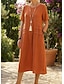 Dame Midikjole مزيج القطن Skiftkjole Kjoler i bomullslin Uformell kjole Klassisk Moderne Daglig Helg Normal عادي Kortermet Crew-hals Blå Svart Gul Rosa Sommer