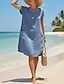 Dame Midikjole Skiftkjole Hvit kjole Kjoler i bomullslin Kjole i lin Fritid Daglig Feriereise Løstsittende عادي Kortermet V-hals Blå Svart Hvit Rosa Sommer Vår