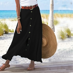 Dame Skjorte Bluse Ermeløs skjorte Knapper Helfarge Bohem Stilfull Klassisk Ermeløs Crew-hals Vanlige topper Daglig Ferie Ut på byen Blå Svart Hvit Militærgrønn Navyblå Sommer Vår