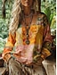 Dame Boho T-skjorte T skjorte T-skjorte Trykt mønster Blomstret Grafisk Årgang Etnisk Fritid Langermet V-hals Vanlige topper Daglig Helg Ferieklær Oransje Sommer Vår Høst