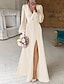 Strandbryllup Bryllup Dusj Liten Hvit Kjole Bryllup Dusj Kjoler Uformelle Bryllupskjoler A-Linje V-hals Lange ermer Asymmetrisk Chiffon Bryllupskjoler med Ensfarget