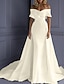 Hall Uformelle Enkle Bryllupskjoler Slank Off Shoulder Kappeskeving Court Train Satengbrudekjoler med Ruched Split Front