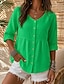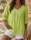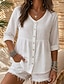 Dame Skjorte Lin-inspirerte sett Bluse Bomullsskjorte Blonde Lapper Helfarge Grunnleggende Fritid 3/4 ermer V-hals Vanlige topper Daglig Hvit Sommer Vår