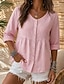 Dame Skjorte Skjorter i bomullslin Pullover Helfarge عادي Elegant Ferie Årgang 3/4 ermer Lange topper Daglig utendørs Gateklær Hvit Rosa Himmelblå Grønn Kakifarget Sommer Vår Høst