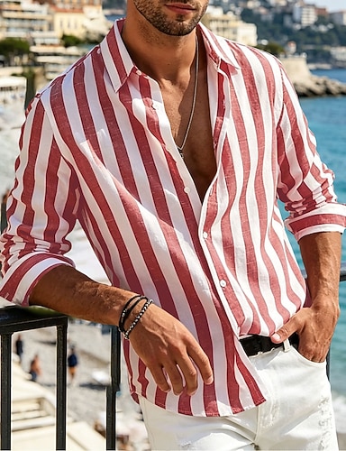 Herre Skjorte Linskjorte Sommerskjorte Strandskjorte Stripete skjorter Stripet Gateklær Feriereise Blå Gul Rosa Rød Langermet Aftæpning Sommer Vår Klær