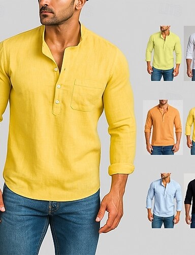 Herre Skjorte linskjorte Skjorte med kinesisk krage Mandarin skjorte med krage Uformell skjorte Bomullsskjorte عادي Feriereise Gate Svart Gul Lysegrønn Rosa Kortermet Båndkrage Sommer Klær