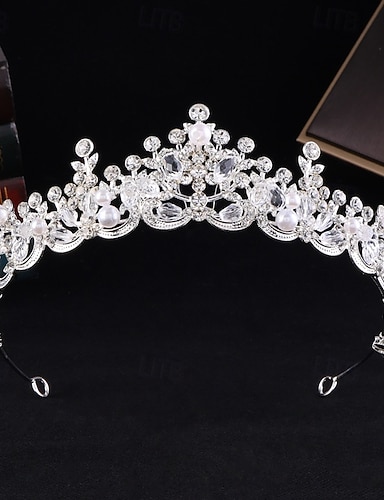 Crown Tiaras Hodepryd Legering Bryllup Bursdag Elegant Med Rhinsten Perle Hodeplagg Hodeplagg