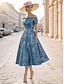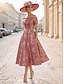 A-linje Te-lengde Gjestekjole til bryllup Formell kjole Derbykjole Kjole til brudens mor Kortermet Løse skuldre Elegant Pastell Formell Jacquard med Plissert