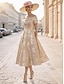 Kjoler Dress dress Te-lengde Gjestekjole til bryllup Kjole til brudens mor 3/4 ermer Høyhalset Besmykket Elegant Årgang Formell Bryllupsgjest Stretchstoff med Blonder Perledetaljer