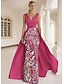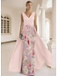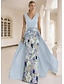 Ballkjole Gulvlengde Ballkjole med overskjørt Elegant Ermeløs V-hals Bryllup Formell Sateng Blonder med Brodert blomst 3D-blomster