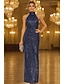 Linjeform Gulvlengde Gjestekjole til bryllup Formell kjole Aftenkjole Ballkjoler Elegant Ermeløs Grimehals Skoleball Formell Paljetter med Glimmer