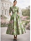 A-linje Te-lengde Cocktailkjoler Elegant Årgang Blomster Kortermet Crew-hals Hage fest Bryllup Lomme Sateng Cowlhals med Blomstertrykk Sløyfe(r) Plissert