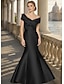 Havfrue Gulvlengde Gjestekjole til bryllup Formell kjole Aftenkjole Ballkjoler Elegant Halvlange ermer Løse skuldre Skoleball Formell Stretchstoff med Brodert blomst Ensfarget