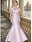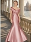 Havfrue Gulvlengde Kveldskjoler Elegant Ermeløs Enskuldret Bryllup Formell Rosa kjole Elastisk satin med Plissert