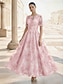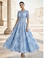 A-linje Kjoler Ankellengde Cocktail Kjole Gjestekjole til bryllup Kjole til brudens mor Langermet Crew-hals Elegant Årgang Formell Blonder Tyll med Broderi Appliqué Blomst