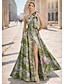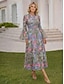 A-Linje Blomster Kjole Strand Bryllup Sommer Maxi Kjoler Kvinner Høytid Casual Kjole Gulvlengde Lange Ermer V Hals med Trykk Stroppe Kjole å imponere Bryllupsgjest Kjole