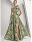 A-linje Gulvlengde Kveldskjoler Elegant Årgang Høy splittelse Ermeløs Enskuldret Hage fest Bryllup Lomme Jacquard med Sløyfe(r) Spalte Lomme