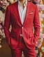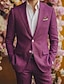 Menn Skoleball Bryllup Smokings Festdrakter Spissjakkeslag Burgunder Forretning Luksus Vår, Høst, Vinter, Sommer Ensfarget Standard passform 3 deler sett Enkelt Brystet Enn-knapp