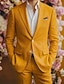 Menn Avslappet Strandbryllup Lindresser Hakkjakkeslag Gul Rosa Mote Lettvekt Sommer Vår Ensfarget Slank Fasong 2-delt sett Enkelt Brystet To-knapp