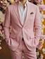 Menn Bryllup Vårbryllup Smokings drakter Med hakk Svart Rosa Fest Kjoler Vår, Høst, Vinter, Sommer Vår sommer Ensfarget Skreddersydd 3 deler sett Enkelt Brystet To-knapp