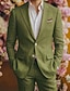 Menn Avslappet Strandbryllup Lindresser Hakkjakkeslag Salvie Mote Formelt Vår, Høst, Vinter, Sommer Ensfarget Standard passform 2-delt sett Enkelt Brystet Enn-knapp