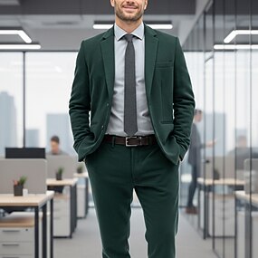 Menn drakter Virksomhet Bryllup Mørkegrønn Vår, Høst, Vinter, Sommer Dress Hakkjakkeslag Daglig Formelt Ensfarget Standard passform 2-delt sett Enkelt Brystet To-knapp