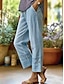 Dame Linbukser i bomull kinesisk Sommerbukser Bukser Ferie Gatemote Grunnleggende Full lengde Middels midje عادي Lomme comfy Komfort Pustende Uelastisk Daglig utendørs Gate Blå Hvit Grønn Kakifarget